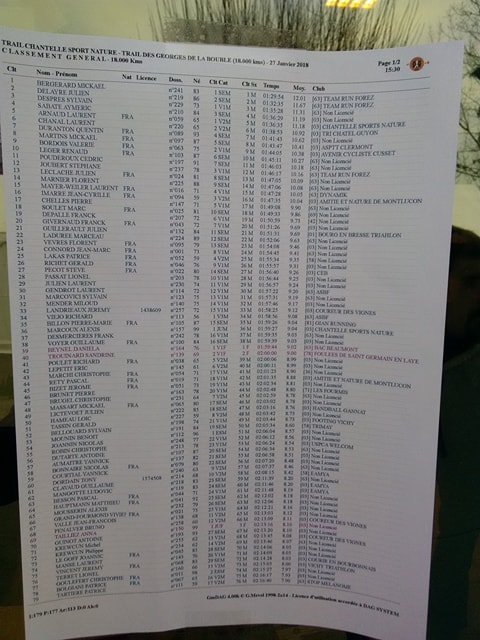 Samedi 27 Janvier a eu lieu le Trail des Moulins des Gorges de la Bouble à Chantelle (03)